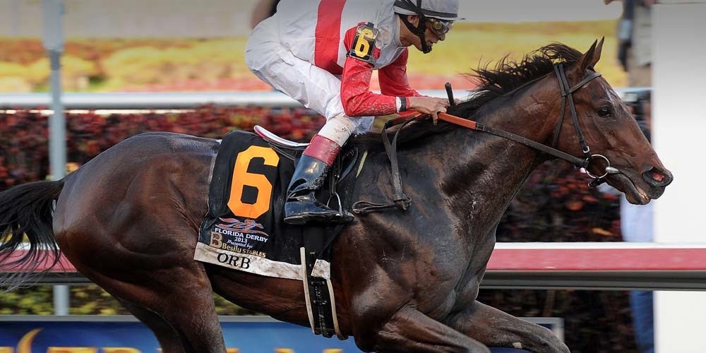 ORB (2013) Heading into the 2013 Derby trail, Hall of Fame trainer Shug McGaughey was still searching for his first Derby Win. He had saddled six starters, including the great EASY GOER in 1989, but had not yet worn the roses. Off two consecutive Wins at Aqueduct and Gulfstream, ORB made his Graded stakes debut in the Fountain of Youth. He dropped well off the early pace, while the heavily favored VIOLENCE rated off a fast tempo on the rail. As they rounded the final turn, VIOLENCE pounced on the leader while ORB remained about five lengths off the top, although he was rallying powerfully. In the stretch, VIOLENCE opened up a clear lead but ORB chased him down in the last sixteenth for a half-length Win. After another Win in the Florida Derby, ORB was the favorite for the Kentucky Derby. On a wet track with new jockey in Joel Rosario, he came from behind for a splashy 2 ½-length Win. It was the first Derby Winner for both Rosario and McGaughey.